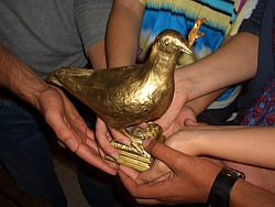 Mit im Gepäck befindet sich dieses Mal eine von 30 bronzenen Friedenstauben mit Ölzweig des deutschen Künstlers Richard Hillinger, die in Talitha Kumi überreicht werden wird. Die Tauben stehen für die 30 Artikel der Allgemeinen Menschenrechtserklärung der Vereinten Nationen und werden seit Jahren in einem symbolischen Akt weitergereicht. Unter anderem haben Nelson Mandela, der Dalai Lama und weitere Friedensnobelpreisträger eine solche Taube in ihren Händen gehalten und Menschen überreicht, die sich für den Frieden in aller Welt einsetzen.