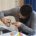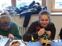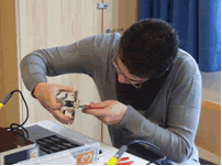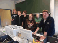 Donnerstag, 5.4.2012 12:30 Uhr: Zum 2. Mal innerhalb einer Woche sind drei Mitarbeiter der Firma NXP-Semiconductors im Unterricht des Profils „So funktioniert die Welt – die Zukunft mit Technik gestalten“ dabei, um die inzwischen von den Kursteilnehmern fertiggestellten Roboter zu prüfen und in Betrieb zu nehmen. Die durch Frau Fernau von der Initiative NaT vermittelte Kooperation zwischen der Profiloberstufe Finkenwerder und NXP ist im 3. Jahr so attraktiv, dass ein Team des NDR-Fernsehens anrückte, um vor Ort Aufnahmen zu machen und die erfolgreiche Arbeit zu dokumentieren. Inzwischen wurde der Beitrag im Hamburg-Journal am Ostersamstag ab 19:30 Uhr ausgestrahlt.
