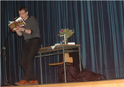 Während der dreißig Minuten Lesezeit gelang es dem Autor, unter den Schülerinnen und Schülern große Spannung zu erzeugen. Neugierig geworden, stellten sie im Anschluss seiner Lesung die unterschiedlichsten Fragen: z.B. wie lange er an seinem letzten Buch geschrieben hat, wie er auf die Titelauswahl kam, wie seine Bücher hergestellt werden, wie viele Bücher er geschrieben hat, wie viel seine Bücher kosten, wo er geboren ist.