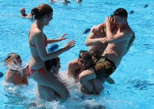 Herrlichster Sonnenschein – 22 Grad Lufttemperatur – 20,2 Grad Wassertemperatur – 450 Schülerinnen und Schüler unserer Schule im Freibad – Welch ein wunderbarer Tag!