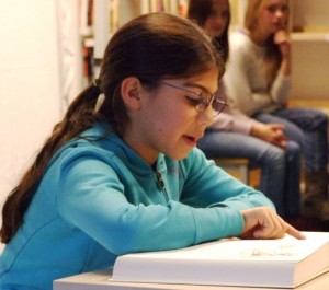 Die sechs LeserInnen (Antonia, Gülsüm, Naima, Nele, Hanno, Marvin) machten dabei ihre Sache wirklich gut. Als kleinen „Gag“ hatten sie sich überlegt, eine auffällige Lesebrille zu benutzen, die dem jeweils nächsten Leser übergeben bzw. angepasst wurde.