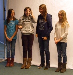 Im Anschluss gab es ein musikalisch untermaltes Schattentheater, bei dem SchülerInnen der siebten Klassen (Carina, Kira, Marlen, Melina) das Märchen „Schneewittchen“ präsentierten, das sie vorher allerdings unter der Leitung von Herrn Klein umgeschrieben hatten. Nach kurzweiligen 40 Minuten jedenfalls schienen die Gäste, die auch von der nördlichen Elbseite gekommen waren, zufrieden gewesen zu sein.