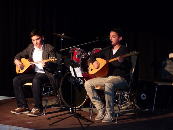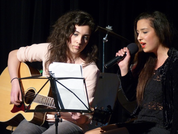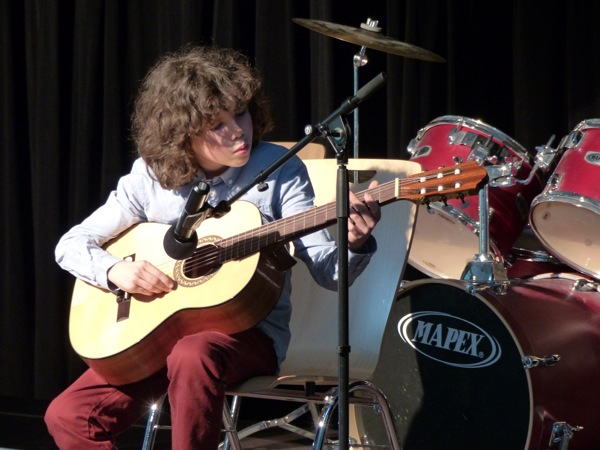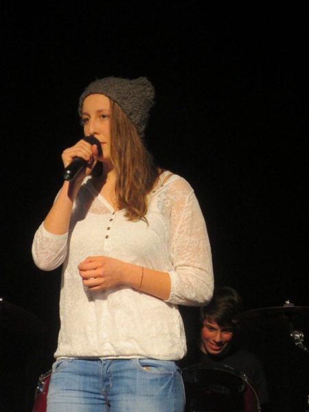 Dank der Umbaumaßnahmen war die Akustik im Raum den auftretenden Künstlern wohlgesonnen und die schwarzen Vorhänge erzeugten eine gebündelte und konzentrierte Atmosphäre. So war es ein Genuss, den Schülerinnen und Schülern aus den verschiedenen Altersstufen zuzuhören, angefangen bei den jüngsten Künstlern mit dem eigenen Song „Without You“, (Serena und John Luca aus Jg. 5), bis hin zu einem emotional berührenden Song „On My Own“ aus dem Musical „Les Miserables“, vorgetragen von Esma aus der Oberstufe (S 1).