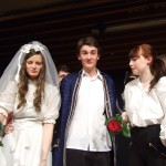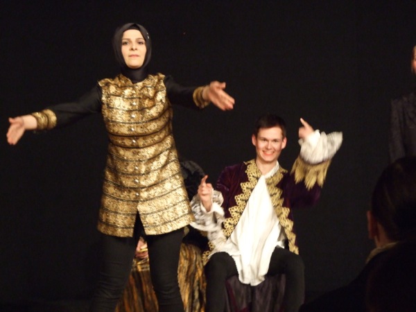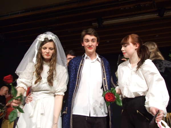 Ganz feines Schultheater wurde am 26.03. vom 4-stündigen Theaterkurs aus GymFi und Stadtteilschule unter der Leitung von Clemens Vorberg gezeigt: Georg Büchners „Leonce und Lena“, in einer ungewöhnlichen Fassung: textlich eng bei Büchner, aber doch mit modernen Anklängen in der Inszenierung. So verzichtete die Gruppe fast völlig auf die sonst üblichen Auf- und Abtritte, sondern die meisten SchauspielerInnen waren nahezu durchgehend im Bühnenhintergrund auf niedrigen Podesten sichtbar. Oder die Flucht von Leonce fand nicht – wie im Original – nach Italien statt, sondern zu den Klängen von „California Dreaming“ von „The Mamas and the Papas“ – nach Amerika. Bei den großartigen schauspielerischen Leistungen der gesamten Gruppe Einzelne herauszustellen, fällt schwer; aber wie König und Königin (Lukas Massel, Felicitas Rehberger) Büchners Polit-Satire durch ihre Komik gerecht wurden, war köstlich und wurde vom Publikum mit manchem Lacher belohnt. Leonce (Dmitri Sevkopljas) und seine Freundin Valeria (Virginia Roncalli) überzeugten neben grandiosem Spiel auch durch ihre große Textsicherheit – und das bei sehr großem textlichen Umfang. Auch die wunderbare Sensibilität zwischen Leonce und Lena (Denise Eickhoff), aber auch zwischen Leonce und Rosetta (Sonja Glisovic) soll erwähnt werden. Und die Souveränität, mit der die „Staatsbediensteten“ (Gülcan Yilmaz und Sümeyye Solmaz) die ZuschauerInnen zum Mitmachen aufforderten und durchaus auch mal zusammenstauchten, war mutig und sehr präsent. Immerhin gelang es ihnen, ihr Volk (die BesucherInnen) nach ihrer Pfeife tanzen zu lassen bzw. einige Auserwählte zur Hochzeitsfeier ins Schloss (auf die Bühne) zu bitten. Letztlich nahm man der Gouvernante (Stina Mewes) und der Staatspräsidentin (Katharina Oben) ihre Rollen durch ihr überzeugendes Spiel gern ab. Abschließend lässt sich sagen: „Hut ab“ vor der Leistung der gesamten Gruppe, der nach dem großartigen letztjährigen Stück („NICHTS“) ein furioser Schlussakkord gelungen ist.