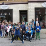Im Anschluss gingen wir gemeinsam zur Finkenwerder Buchhandlung Bücherinsel, um die Buchgutscheine einzulösen. Frau Gamradt und Frau Jasper erwarteten uns dort mit einem Stapel Welttagsbüchern, den von dem Autor Thilo eigens für diesen Anlass geschriebenen Kurzroman: „Die Jagd nach dem Leuchtkristall“.