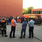 Am 2. Juni um 19.00 Uhr hallte die Lautsprecherdurchsage „Achtung, Achtung! Dies ist ein Feueralarm!“ und wenige Minuten später trafen die FF Finkenwerder, ihre Kollegen von der Hamburger Berufsfeuerwehr und der FF Francop auf dem Schulgelände ein: Zu „löschen“ war ein fiktive Brand im Heizungskeller mit starker Rauchentwicklung!