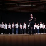 Direkt im Anschluss brachte der Theaterkurs des Jahrgangs 9 unterschiedliche Szenen zum Thema „Zeit“ auf die Bühne. Besonders deutlich wurde die Maschinerie der und die Abhängigkeit von den elektronischen Geräten unserer Zeit. Für den verzweifelten Computernerd (gut gespielt von Henrik Schwarzkopf), die begeisterten Onlinekäuferinnen (schöne Darbietung des Songs „High Heels“) oder diejenigen, die immer noch nicht wissen, wie ein Handy bedient wird, ist die heutige schnelllebige Welt eine tickende Zeitbombe.