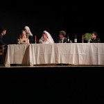 Der vierstündige Theaterkurs der S2 führte das Stück „Die Kleinbürgerhochzeit“ von Bertolt Brecht auf. Die Darsteller zeigten souverän in schnell aufeinander folgenden Dialogen eine Hochzeitsgesellschaft, die mit gutem Essen, Wein, Tanz und heiteren Geschichten versucht, die scheinbare Idylle des Kleinbürgertums aufrecht zu erhalten. Zum Schluss wurden nicht nur sämtliche Möbel, sondern auch der gute Ruf des Brautpaares (überzeugend gespielt von Helene Wörn und Julian Andrä) und die heile Welt des Spießbürgertums zerstört.