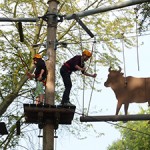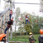 Im Rahmen des Projektes „Gewaltprävention/Zivilcourage“ besuchten die achten Klassen den Kletterpark in Wilhelmsburg. Es gehörte schon ein bisschen Mut dazu, sich auf die bis zu 10 m über dem Boden befindlichen Kletterelemente zu begeben und über wacklige Bretter, in der Luft hängende Trapeze oder gespannte Drahtseile zu balancieren. Jeder Parcours endete mit einer Seilbahn, an der man an den Sicherheitsgurten mit viel Schwung wieder auf den Boden kam.