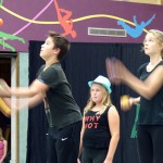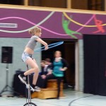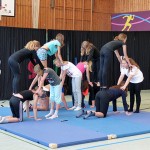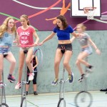 Balanceakte gelangen mühelos, Jongleure boten Spaß. Die Schüler-Akrobaten formierten sich zu menschlichen Pyramiden. Gegenseitig wurden die Körper gehalten und überraschend rollten sich die Schülerinnen und Schüler aus den geturnten Formationen heraus. Mut wurde auch bei den Hochrad-Kunststücken und beim Balancieren auf den großen Bällen bewiesen. Zur Sicherheit war immer die helfende Hand der Zirkus-Trainerin Carolin zur Stelle.