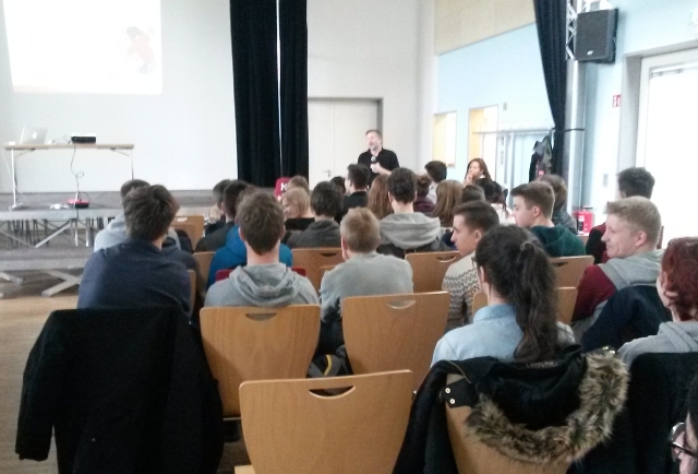 Am Montag, dem 30.3.2015, fand in Zusammenarbeit mit der Stadtteilschule Finkenwerder eine Informationsveranstaltung für alle 10. Klassen des GymFi und alle VS-Klassen der StS in der Pausenmehrzweckhalle statt. Die Michael-Stich-Stiftung hatte einen mit HIV- und AIDS-Fällen beschäftigten Kinderarzt des UKE, Herrn Dr. R. Kobbe, nach Finkenwerder entsandt, der eine gute Stunde, unterstützt von eindringlichen Folien, die Krankheit und ihre Folgen schilderte, dabei mit Fällen aus seiner Praxis das Ganze für die Schülerinnen und Schüler anschaulich und begreifbar machte und sie auch immer wieder in den Vortrag einbezog. Gerade dadurch, dass es sich bei den Fallbeispielen um Kinder handelte, wurde HIV/ AIDS als gesamtgesellschaftliche Herausforderung klar und kam den Schü¬lern und Schülerinnen so nah, dass sie höchst aufmerksam dem Vortrag folgten, zahlreiche Fragen stellten und nach dem Vortrag noch zu persönlichen Gesprächen mit dem Arzt nach vorne kamen. Der Aufforderung, die HIV-Prävention ernst zu nehmen und sich in diesem Feld zu engagieren, wer¬den die Schülerinnen und Schüler nach dieser Veranstaltung sicherlich nachkommen (schon letztes Jahr wurde zum Welt-AIDS-Tag ja bei uns Rote-Schleifen verkauft)!