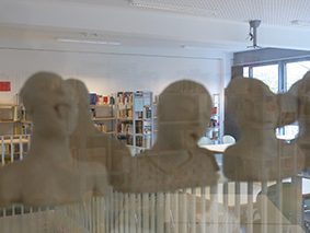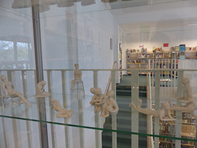Antony Gormley, ein englischer, zeitgenössischer Bildhauer, lieferte die Anregungen für die kleinen Ganzfigurplastiken aus Ton, die in der Vitrine wie zufällig sitzen, liegen, ausruhen und miteinander agieren. Alle zusammen ergeben die Figurenmenge, die eine raumfüllende Wirkung auslösen. Jede Figur zählt!