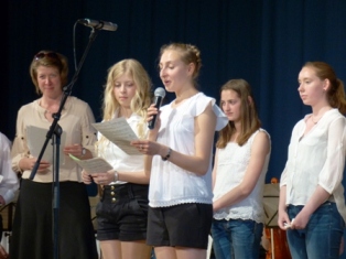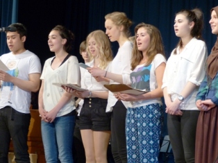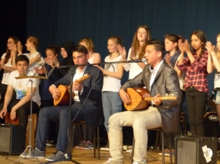 Das hebräische Volkslied Hava nagila, vorgetragen vom Musik S2-Kurs, begleitete die Zuhörer durch den Abend und erfuhr dabei durch den Einfluss verschiedener Kulturen einen mehrfachen Wandel, von original bis jazzig.