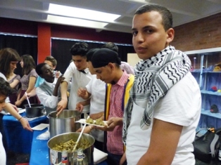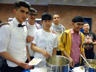 In der Pause konnten die Besucher des Konzertes die gemeinsame Ausstellung der Klasse 8 WuW (StS) und der Klasse 8c (GymFi) „Eingewanderte Erinnerungsstücke“ besichtigen und sich beim Welt-Büffet „The Taste of Heimat“ , zubereitet von Schülern und Schülerinnen der Internationalen Vorbereitungsklassen, kulinarisch verwöhnen lassen.