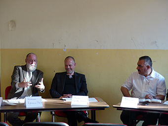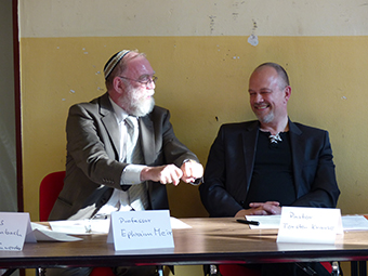 Wie schon beim Trialogtag am 26.März zu Texten um „Religion und Gewalt“, so rangen auch diesmal Imam Temur und Pastor Krause im interreligiösen Dialog um ein angemessenes Verständnis schwieriger religiöser Textstellen – dabei hatten sie an diesem Montag, in Professor Ephraim Meir aus Jerusalem einen überaus eifrigen und gewinnenden Mitdiskutanten.