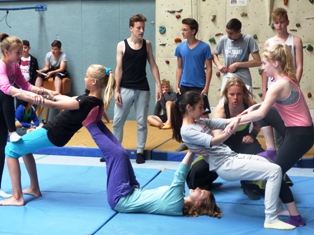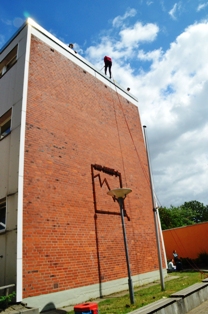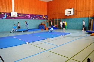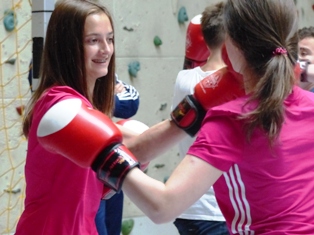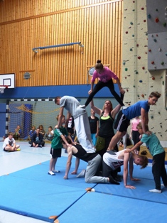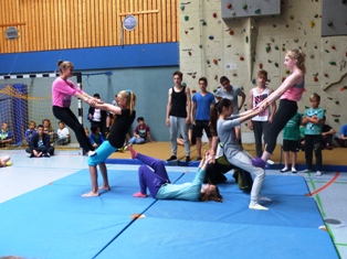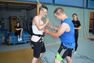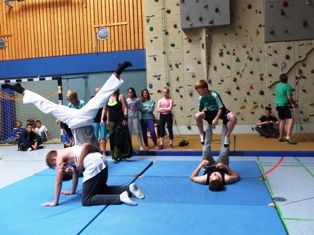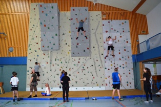 Klettern: An der eigenen Kletterwand wurde geübt, in der Nordwandhalle in die Höhe gegangen, um sich schließlich vom GymFi-Dach abzuseilen.