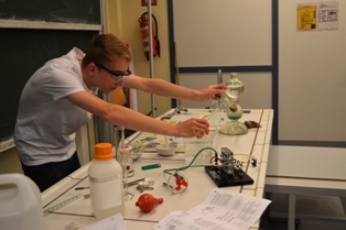 Chemisches Laborpraktikum: Hier wurden u.a. Geldscheine feuersicher gemacht und die Auswirkungen sauren Regens auf Rasenwuchs untersucht.