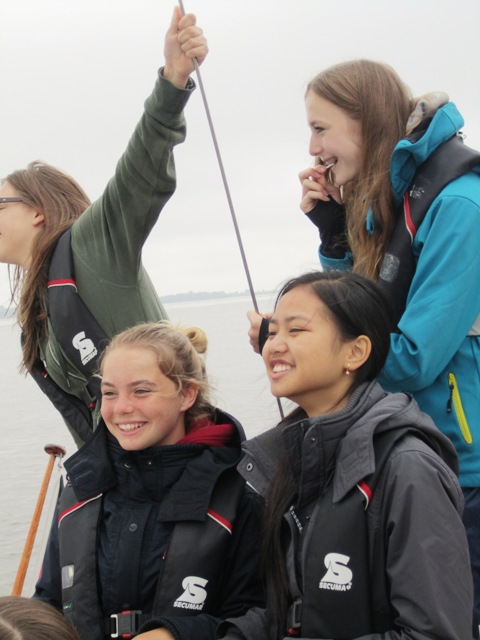 Am 14.07.2015 hatte die 8a Gelegenheit, an einem Segelausflug auf der Elbe mit der Segelschule Eichler teilzunehmen. Trotz anfänglichem Regen sind wir gestartet. Die Segel wurden gesetzt, dem Funkverkehr der Wasserschutzpolizei im Hafen gelauscht und nebenbei Wissenswertes über die Verkehrsregeln auf der Elbe erfahren. Der Kontakt zum zweiten Boot, gesteuert von Familie Wolf, wurde gehalten (wenn sie dem ersten nicht voraus waren oder den Wind nahmen), Lollis hinübergeworfen und aus der Elbe gefischt, wenn sie nicht gefangen wurden. Als Höhepunkt wurden zwei Seehunde auf der Sandbank im Mühlenberger Loch gesichtet und mit dem Fernglas intensiv beobachtet. Die abschließende Beurteilung lautete übereinstimmend: „Und im nächsten Jahr wieder?!“ (Fz)