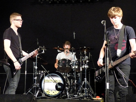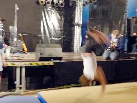Unsere Oberstufenband – spielte zum Schluss mit „First Date“ und „Kids in the Dark“ mit voller Lautstärke ihren straighten Rock. Das Zelt tobte. Dann war das große Spektakel zuende. (Die Schülerinnen und Schüler gingen zum Schulbus oder zurück in die Schule.) Heiner von Ahnen packte mit Ina Willen und räumte alles auf. Viele eingeteilte Schüler halfen mit. Phillip Otufowora hatte sich um die Technik mit dem neuen Team gekümmert.