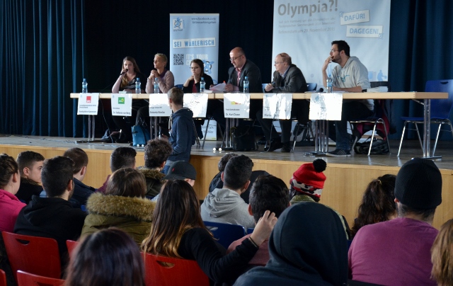 Anlässlich des am 29. November anstehenden Olympia-Referendums bekamen die Schüler und Schülerinnen aus den Jahrgängen 10/VS sowie der Studienstufe am Donnerstag, den 12.11.15, von 12.30h – 14.00h eine auf sie zugeschnittene Polit-Debatte geboten. VertreterInnen von fünf in der Bürgerschaft vertretenen Parteien sowie von der Volksinitiative STOPolympia legten ihre Argumente für und wider Olympia in Hamburg dar und standen den SchülerInnen Rede und Antwort.