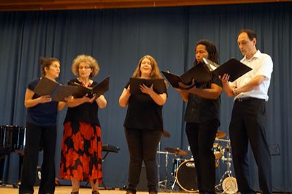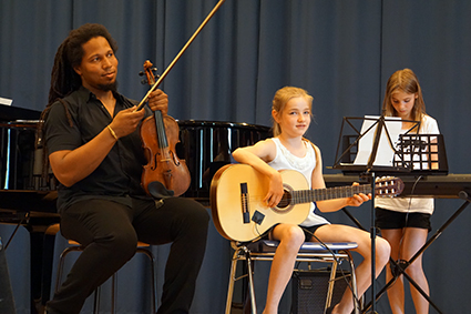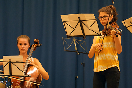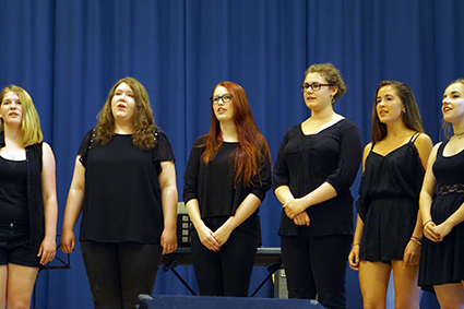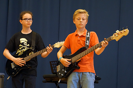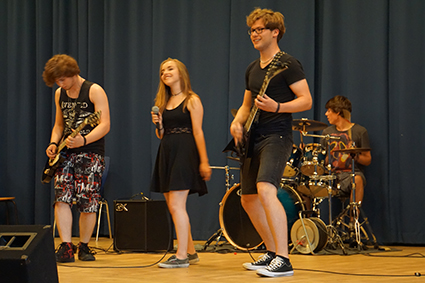 Schließlich schaffte es die Mittelstufenband mit ihrem Bandleader John Lahann und dem bekannten Surf-Rock-Stück „Wipe Out“ die ersten Zuschauer zum Tanzen zu bringen und die Oberstufenband „Battered by Dreams“ zeigte mit Larina Heinrich, dass High School-Komödien nicht immer kitschig sein müssen. Außerdem präsentierten sie lautstark Action aus „Mission Impossible“ und zwei ihrer Klassiker, mit denen sie beim „Talented“ Wettbewerb einen Sonderpreis gewonnen hatten.