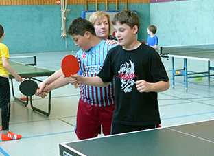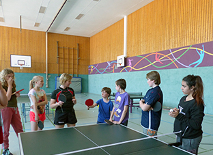 Kurz vor den Maiferien wurde eine 6te Klasse im Sportunterricht von Heidrun Krause besucht, die Landestrainerin für Tischtennis in Schleswig-Holstein ist. So bekam die Klasse eine tolle Einführung in diese anspruchsvolle Sportart. Neben dem Üben der technisch sauberen Ausführung von Rückhand und Vorhand wurden auch einige lustige Spiele gespielt. (Wolff)