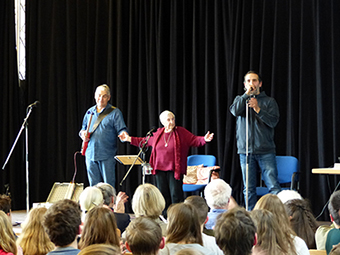 Fotoimpressionen aus dem Workshop mit Kutlu Yurtseven (Microphone Mafia), der Lesung von Esther Bejarano, dem gemeinsamen Konzert und der Siegel Verleihung.