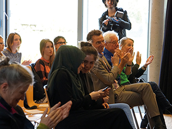 Anlässlich der Verleihung fand ein Konzert statt, das aufregend und voller Emotionen war. Nachdem Esther Bejarano ein halbe Stunde aus ihren „Erinnerungen“ vorlas und sich alle stillschweigend auf sie konzentrierten, folgten danach viele Lieder und auch Raps, in denen es um Diskriminierung und Gewalt ging. Anschließend wurde das Siegel verliehen.