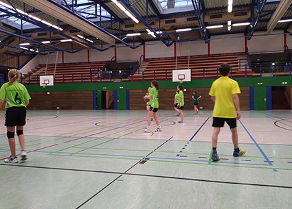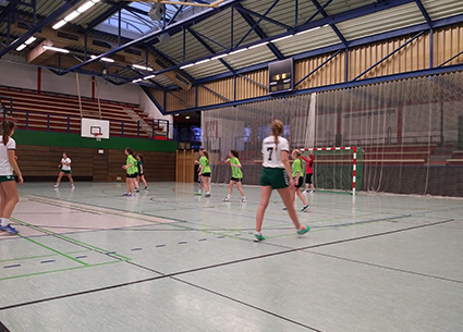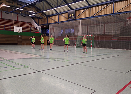 Uns war schon vor dem Spiel klar, dass das nicht einfach werden würde, da wir vorneweg viele Absagen von unseren Spielerinnen der S3 bekommen hatten. Dennoch standen uns noch vier Spielerinnen der eigentlichen Altersklasse zur Verfügung (Malin, Lena, Selina und Angelina). Daher war eine Menge Kreativität und Improvisationsvermögen gefragt und so haben wir unsere Schulmannschaft mit drei Schülerinnen aus der achten Klasse (Jette, Nikolina und Nele) sowie Aneke aus der S2 (die übrigens noch nie auf einem Handballspielfeld gestanden hat) aufgestockt.