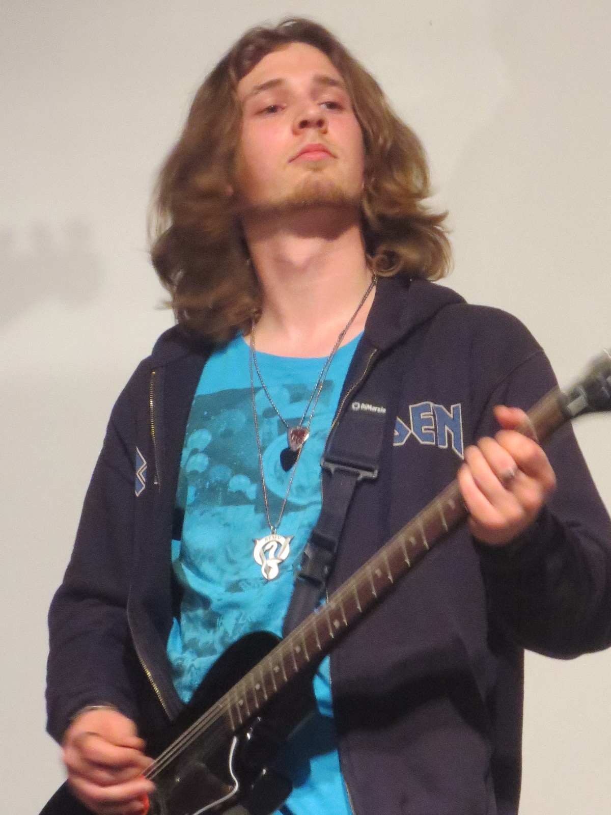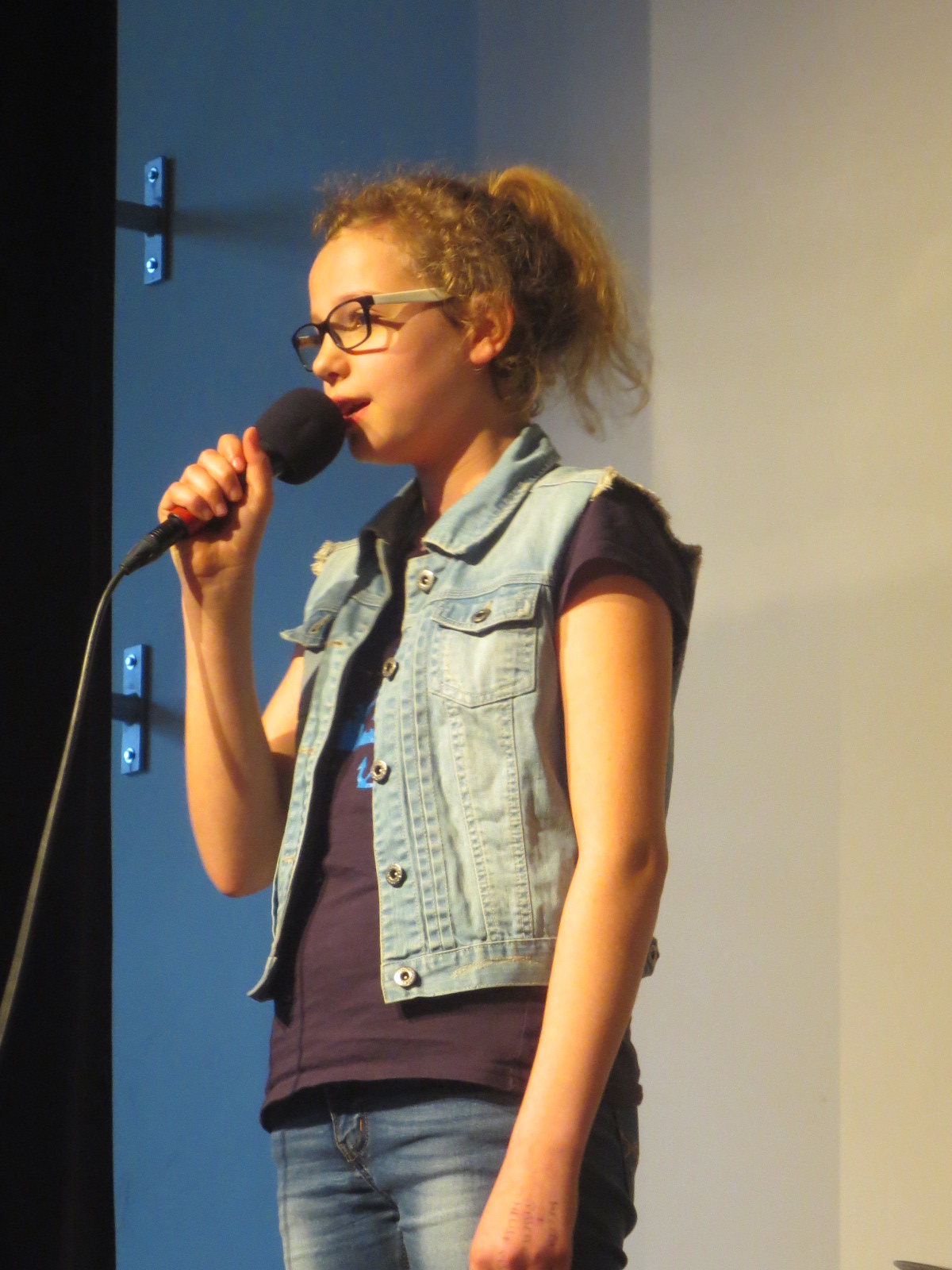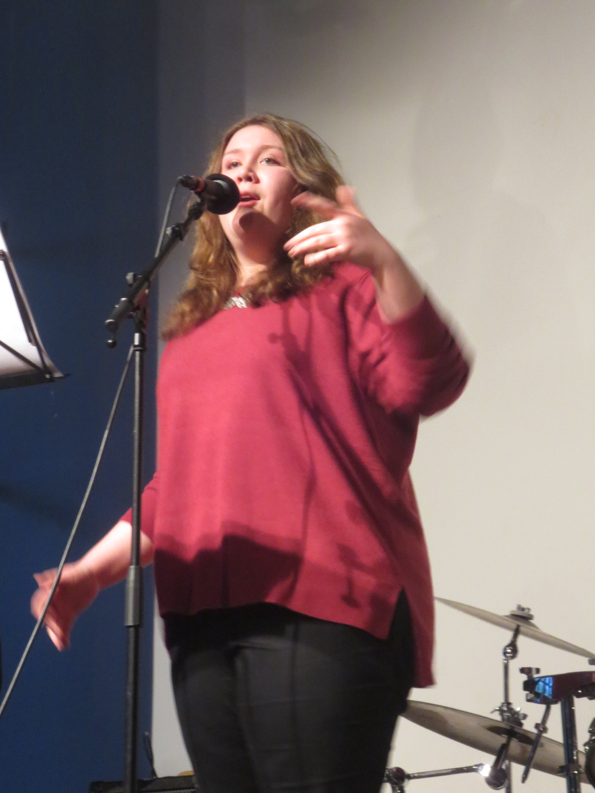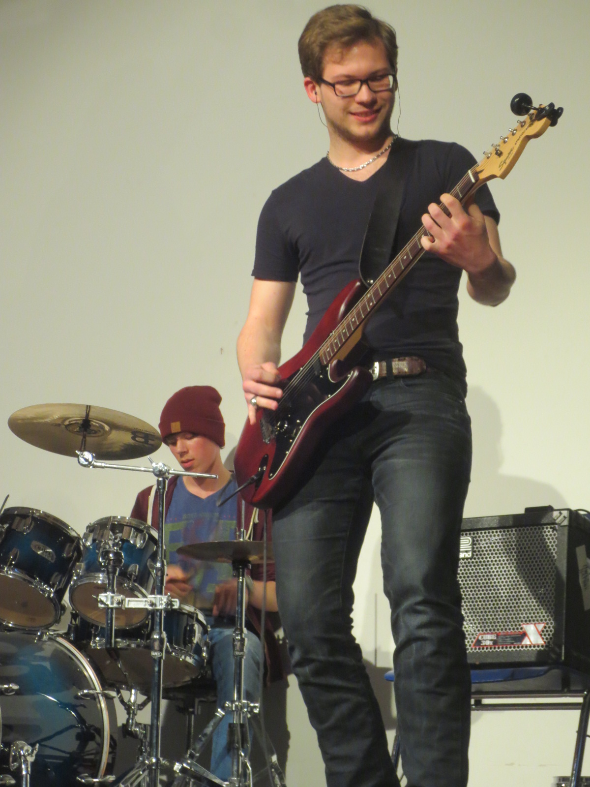Einen krönenden Abschluss stellten die drei Songs der Oberstufenband dar. Sie interpretierten mit der wunderbaren Sängerin Sonia zwei Hits aus den 80ern, bevor sie mit ihrem selbstkomponierten Song „Dark side oft he sun“ den Abend beschlossen und das Publikum beschwingt und bereichert durch vielfältige musikalische Darbietungen nach Hause entließen.