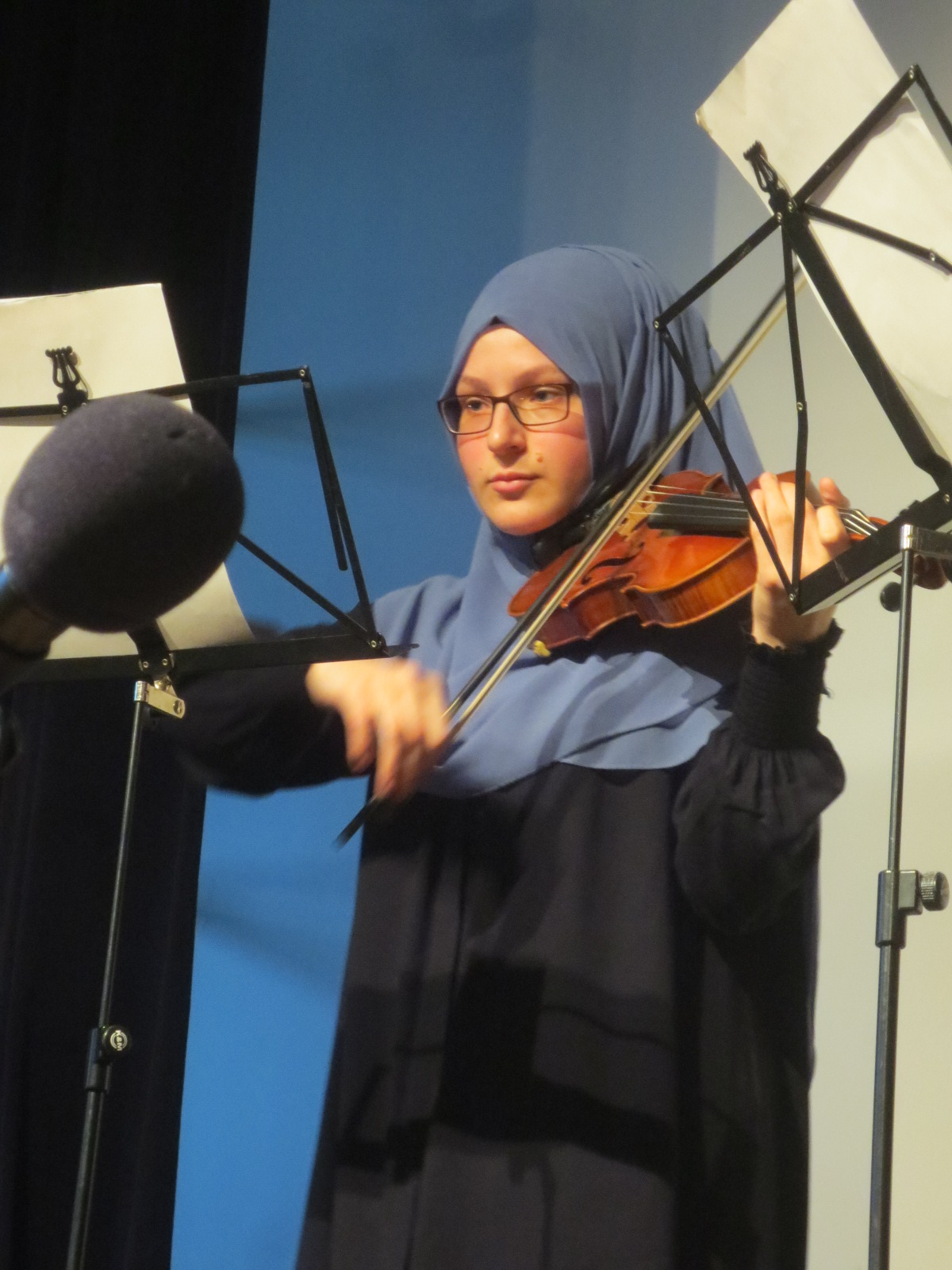 Beim Kammermusikabend am Dienstag, den 11. April, stellten sich Schülerinnen und Schüler von Jahrgang 5 bis zum Abiturienten auf die Bühne und zogen das Publikum durch die Auswahl ihrer vorgetragenen Stücke und ihr Können in den Bann. Besonders hervorzuheben ist das sehr gefühlvoll vorgetragene Duett von Schostakowitsch, gespielt von Erva und Marlen auf der Geige und begleitet von Frau Witt am Klavier. Auch Henry wusste mit seinem Vortrag des Songs „Killing Me Softly“ die Zuhörerherzen zu öffnen und durch sein Klavierspiel zu überzeugen. Die Gesangssolisten des Abends standen da in nichts nach. So wagten sich Lea und Finja aus der 5c an eine gelungene Interpretation von „Lieblingsmensch“ und trugen ohne Begleitung sogar ein selbstkomponiertes Lied vor. Das verdient ganz viel Respekt!!! Mia sang den „Cup-Song“ mit ganz viel Gespür für den Spannungsbogen der Komposition.