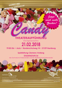Für die Eigenproduktion haben sich die Schülerinnen und Schüler zu Kursbeginn für Süßigkeiten entschieden, die sie besonders gerne mögen oder an die sie besondere Erinnerungen hegen. Es wurden Texte geschrieben, die teilweise solo vorgetragen, aber auch im Zusammenspiel mit anderen Spielerinnen und Spielern präsentiert werden. So entstand unter der Spielleitung von Clemens Vorberg ein buntes, streckenweise auch musikalisches Potpourri – ein süßer, purer Genuss!