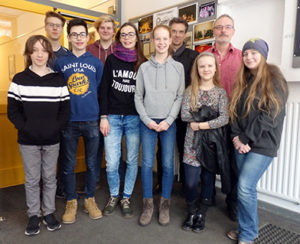 Gekommen waren Ehemalige aus allen drei Jahrzehnten, langjährige enge Freunde der Compagnie, ganze Familien. Unter ihnen der Gründungsschulleiter des GymFi, Herr Pfannkuche. Er hatte 1987 angeregt, das Puppentheater als Arbeitsgemeinschaft an der Schule zu installieren. Seither ist die kleine Bühne nicht mehr wegzudenken. Der Schulleiter, Herr Rüdiger Dartsch, dankte den Puppenspielern und dem Prinzipal Jürgen Harms für ihr jahrzehntelanges Engagement. Er sagte: „Puppentheater ist alles andere als Kasperletheater. Es ist eine bedeutende, eigenständige Kunstform, die in Deutschland an vier Universitäten ein Studienfach ist.“