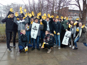 Bei der Frühjahrsaktion „Hamburg räumt auf!“  gab es viel anzupacken. Die 9ten Klassen des GymFi gingen gegen den gedankenlos weggeworfenen Müll und Abfall mit gelben Handschuhen und langen Greifzangen an. Die SchülerInnen sammelten in der Umgebung der Schule und leisteten einen wertvollen Beitrag für den Stadtteil. Am Ende führten volle Müllsäcke eindrucksvoll vor, wieviel Unrat im Gelände lag.