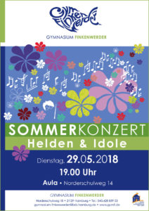 Hiermit möchten wir Sie/Euch zu unserem diesjährigen Sommerkonzert „Helden & Idole“ des Gymnasiums Finkenwerder einladen.