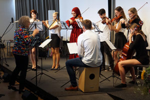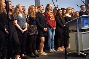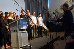 Die Chöre beider Schulen hatten sich extra zu diesem Anlass zum „Oberstufenchor Finkenwerder“ vereinigt und gestalteten neben den Instrumentalisten des GymFi das musikalische Rahmenprogramm.