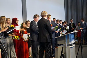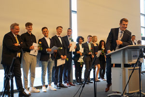 Der Absolventenjahrgang aus den beiden weiterführenden Schulen wurde dieses Jahr wieder im Zeremoniensaal der Firma Airbus Operations GmbH verabschiedet – mittlerweile schon eine Tradition, die im letzten Jahr durch die Ereignisse im Zusammenhang mit dem G20-Gipfel einmalig unterbrochen war.