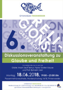 Die Veranstaltung knüpft an die bisherigen intensiven Gesprächsrunden an. Oberstufenschüler/-innen aus den beiden Religionskursen aus der S1 (Jahrgang 11 und 12) werden vorab in das Thema einführen.