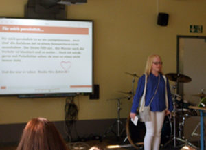 Zu guter letzt beobachtete Hjördis aus der 8a die Arbeit im Drehtürkurs ganz genau. Sie leitete daraus mögliche Lichtblicke im Hinblick auf intrinsische Motivation für den Schulalltag ab. Ihr Ziel war es, nicht nur den anwesenden Lehrern im Raum zu zeigen, wie man Schülerinnen und Schüler gut motivieren kann.