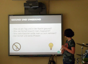 Emmely aus der 6b fand einen komplett anderen Zugang zum Thema „Licht und Schatten“. Sie präsentierte gesunde und ungesunde Lebensführung am Tag und in der Nacht.
