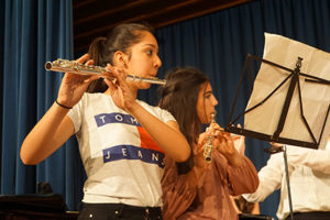 Serap (Jg. 6) und Sonia (S2) boten heldenhaft Solostücke dar. Während Serap mit ihrem Klavierspiel aus dem Film „Amélie“ alle Zuhörer in Staunen versetzte, stand Sonias eindrucksvolle Stimme der von Superstar Adele in nichts nach.