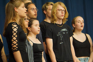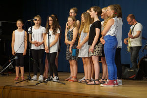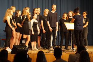 Den Abschluss bildete der Oberstufenchor. Nach einem gefühlvollen „My heart will go on“, gaben sie zum Abschluss allen die Botschaft „Don’t stop believing“ – „Höre nie auf, an dich selbst zu glauben“ mit, und das sehr schön mehrstimmig.