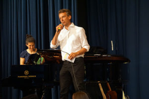 Pünktlich zum Sommerkonzert war es kochend heiß draußen und in der Aula, in der dieses Jahr lauter Helden und Idole in unterschiedlichsten Liedern und Musikstücken dargeboten wurden.