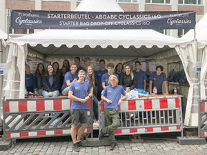Gesagt getan. Es meldeten sich fast 30 Schülerinnen und Schüler an, um bei den diesjährigen Cyclassics Mitte August zu voluntieren. Also ging es an einem schönen Sonntag Morgen gemeinsam mit dem Sonnenaufgang in die Hamburger Innenstadt, um anzupacken. Manche kamen noch etwas verschlafen aus dem Bett, andere bereits gut gelaunt an. Der Einsatzort der engagierten Helfer war die Beutelaufbewahrung. Hier hatte man viel Kontakt zu den noch motivierteren Athleten. Die angepeilten 9 Arbeitsstunden vergingen langsam, nach ein paar Stunden kippten die Gemüter. Manche wurden müde und bereuten ihre Entscheidungen zunehmend, während die Frühaufsteher in immer bessere Stimmung verfielen.