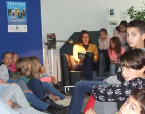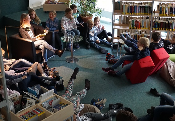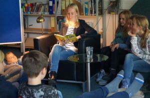 Am Montag entführte uns Frau Schüler in das London des Jahres 1665 mit dem Buch: „Der BlackThron-Code“ von Kevin Sands. In der Geschichte wird die Stadt von einer Serie mysteriöser Morde heimgesucht. Es werden Alchemisten getötet und auch der Apothekermeister Benedickt Blackthorn ist in Gefahr. Sein Lehrling, der 14-Jährige Christopher Rowe, spürt es und ihm bleibt nur wenig Zeit, die Mörder zu enttarnen und hinter ein Geheimnis zu kommen. Am Dienstag überraschte der Kollege Holli sein Publikum mit dem Buch: „Tanz der Tiefseequalle“ von Stefanie Höfler. Die Geschichte erzählt von zwei sehr verschiedenen Außenseitern und wie eine vorsichtige Annäherung gelingen kann. In seiner Lesung ließ Holli das junge Publikum in die Seele der schönen Sera eintauchen und Neugierde und Anziehungskraft für den unattraktiven Niko empfinden.