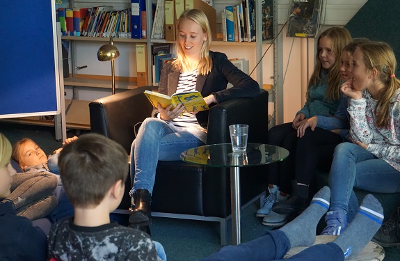 Am Mittwoch nahm uns Frau Schallhorn auf eine abenteuerliche Reise mit dem Buch „Kannawoniwasein: Manchmal muss man einfach verduften“ von Martin Muser mit. Die Fünftklässler lauschten gespannt und durften erfahren, was in dem ersten und zweiten Kapitel passiert. Dann blieb noch Zeit für Vermutungen, wie die Geschichte weitergeht und was dem 10 -Jährigen Finn noch alles so widerfährt. Am Donnerstag las Frau Stolzenburg aus dem Buch: „Caldera: Die Wächter des Dschungels“ von Eliot Schrefer vor und zog SuS aus der 5b sowie der 5c in ihren Bann. Der magische Dschungel von Caldera schwebt in Gefahr unterzugehen und nur Tiere mit magischen Kräften, die so genannten Schattenwandler, können das verhindern. Eines davon ist das Panthermädchen Mali. Wer die anderen Schattenwandler sind und wie die Geschichte weitergeht, verriet Frau Stolzenburg natürlich nicht, sie legte aber das Buch ihrem Publikum ans Herz.