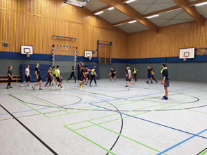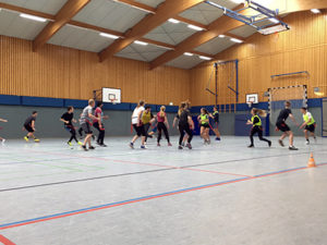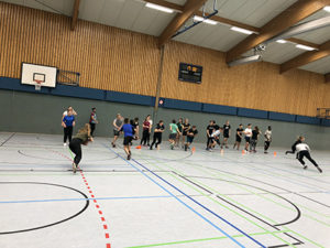 Am Ende gab es mehrere Abschluss-Spielzüge unter der Anleitung der Coaches, und ein „Cooldown“.