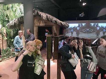 Wir bekamen alle ein Arbeitsblatt, um die Klimazonen ausführlich zu erkunden, die wir in der Reise kennengelernt hatten. Es war wirklich ein tolles Erlebnis das Klima in verschiedenen Zonen kennenzulernen. In der Antarktis herrschten Minustemperaturen, im Niger war es ziemlich heiß und in Kamerun war es schwül und feucht. Dort konnte man auch einen nachgestellten Regenwald mit tierischer Geräuschkulisse und vielen Pflanzen erkunden, ein wirklich spannendes Erlebnis!