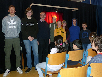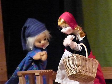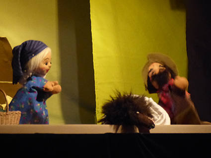 Eine Aufgabe stellte der Compagnie-Leiter Herr Harms vorab an die jungen Zuschauer: Bei den zwei gezeigten Varianten des Märchens sollten die jeweiligen Besonderheiten herausgefunden werden. Die Rätselaufgabe wurde von den aufmerksamen ZuschauerInnen leicht gelöst. Die Puppenspieler boten einen tollen Event zum Mitmachen.