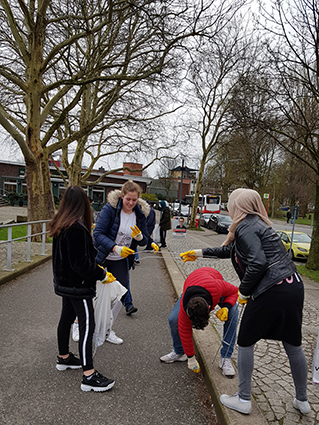 Ende März haben wir, die 9. Klassen des GymFi bei der Aktion „Hamburg räumt auf!“ teilgenommen. Mit gelben Handschuhen und Müllzangen haben wir weiße Beutel mit Müll befüllt. Während des Aufräumens fiel uns die Menge an Abfall, welcher auf dem Boden liegt, deutlich auf – leider, zu viel! Obwohl in unserer Stadt so viele Tonnen stehen, werfen wir alle leider viel zu viel Müll auf den Boden und verschmutzen unsere eigene Umwelt. Jeder kann selber anfangen, das zu ändern.
